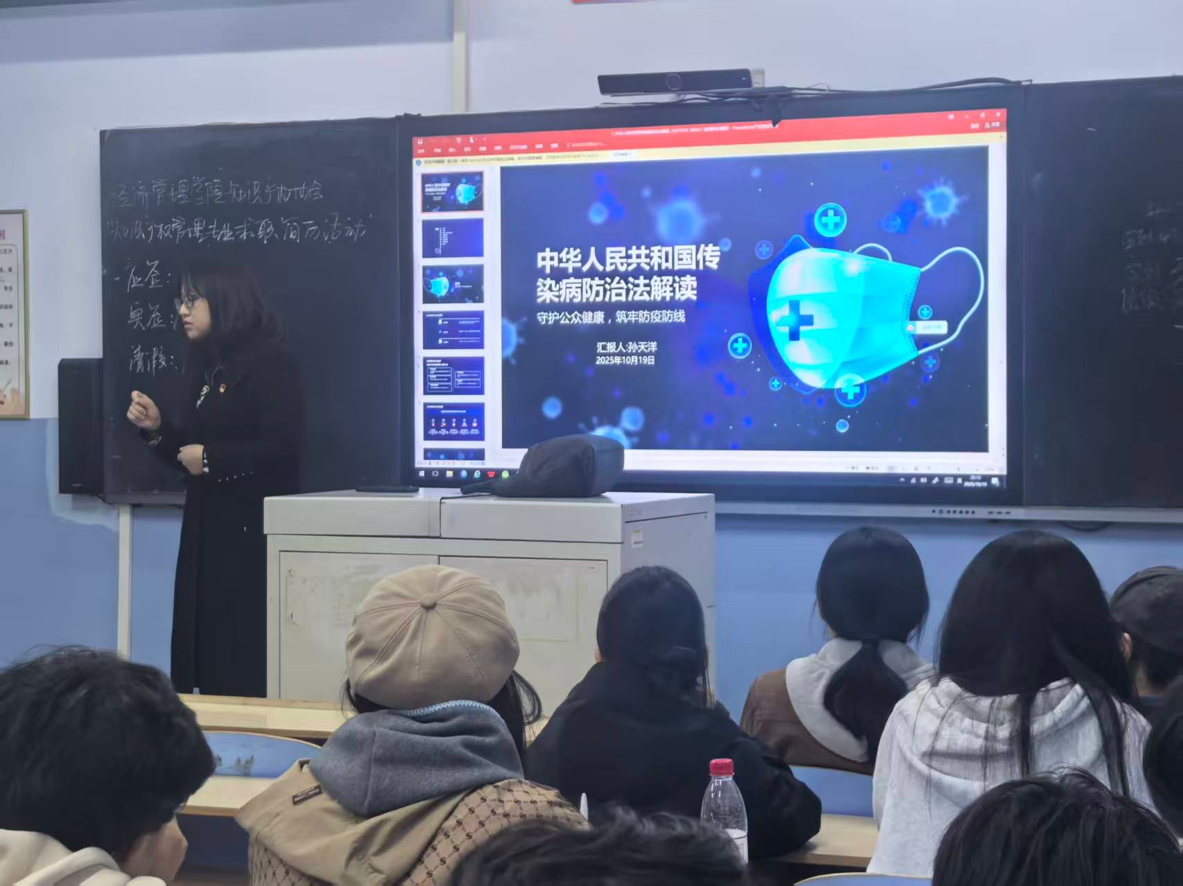 课堂上,课程紧扣防控实际拆解法条:《中华人民共和国传染病防治法》明确的“个人传染病报告义务”,对应学子出现腹泻症状后及时告知辅导员、校医的行动,这是阻断病菌扩散的首道防线,更是法律赋予的责任;法律规定的“学校防控职责”,则落地为学院食堂餐具灭菌、饮用水检测、隔离区规范设置等举措,每一项均源于法律要求,直接守护师生健康。主讲人更引导学子理解:法治不是被动遵守,而是主动护安全——不信谣、不传谣、配合流调,都是用法律逻辑维护集体权益。